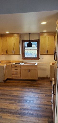 This kitchen remodeling project was designed to give the homeowner a modern, functional, and visually appealing space. The customer wanted a complete update, so our team performed a full kitchen gut renovation, taking the space down to the studs to create a fresh foundation.